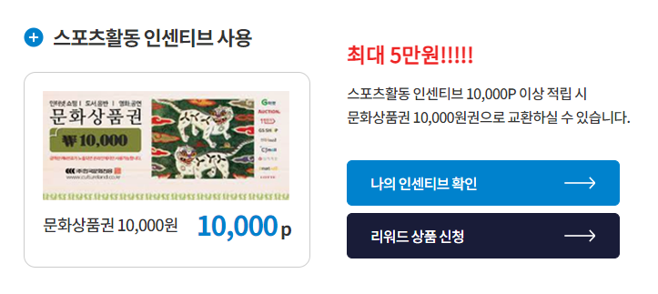 - 스포츠활동 인센티브 : 인센티브 인증시설에서 QR코드 인증 후 활동을 해야 인정됨.