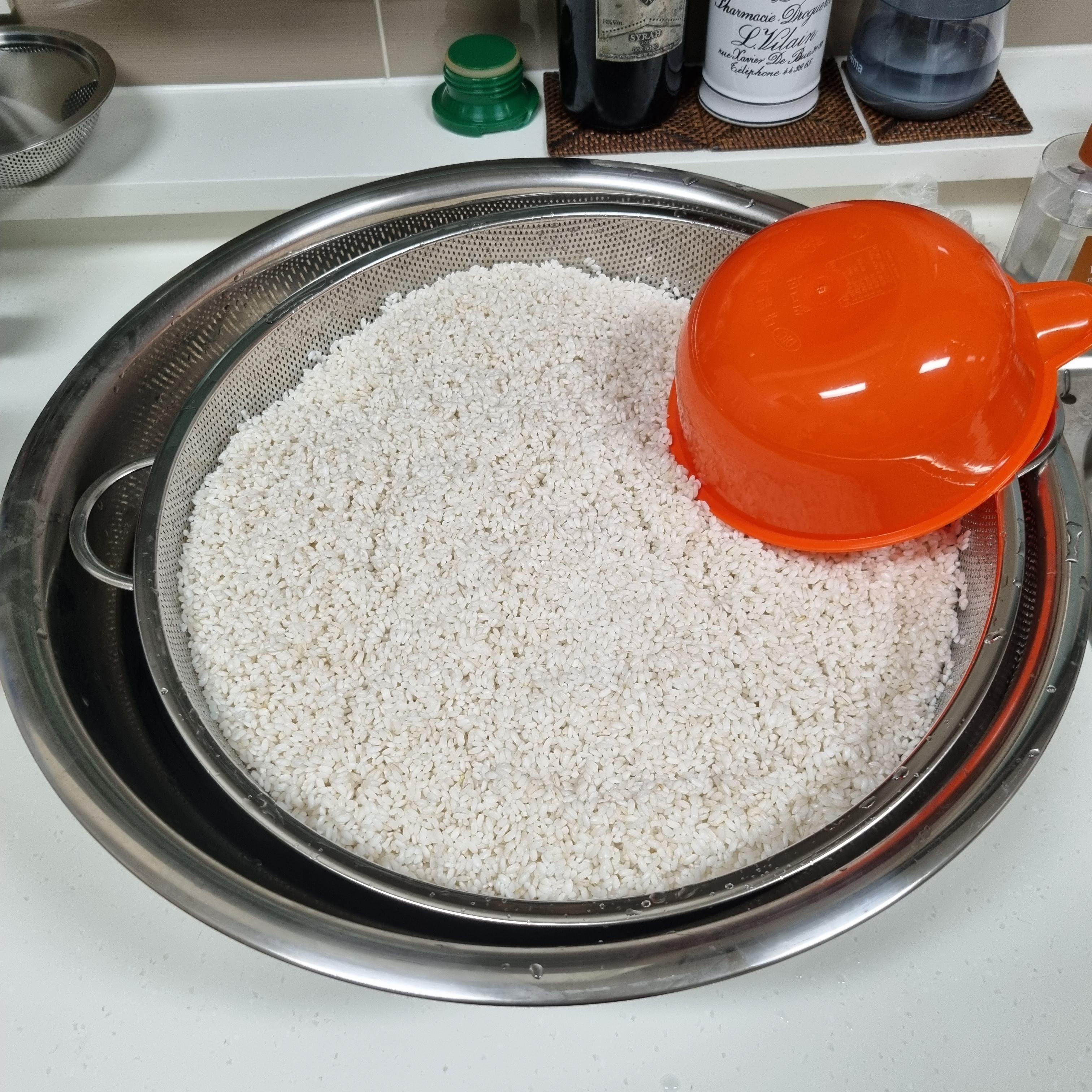 1. 찹쌀 4kg 세미, 침미, 탈수의 과정을 걸쳐 물기를 쫙 빼놓는다.