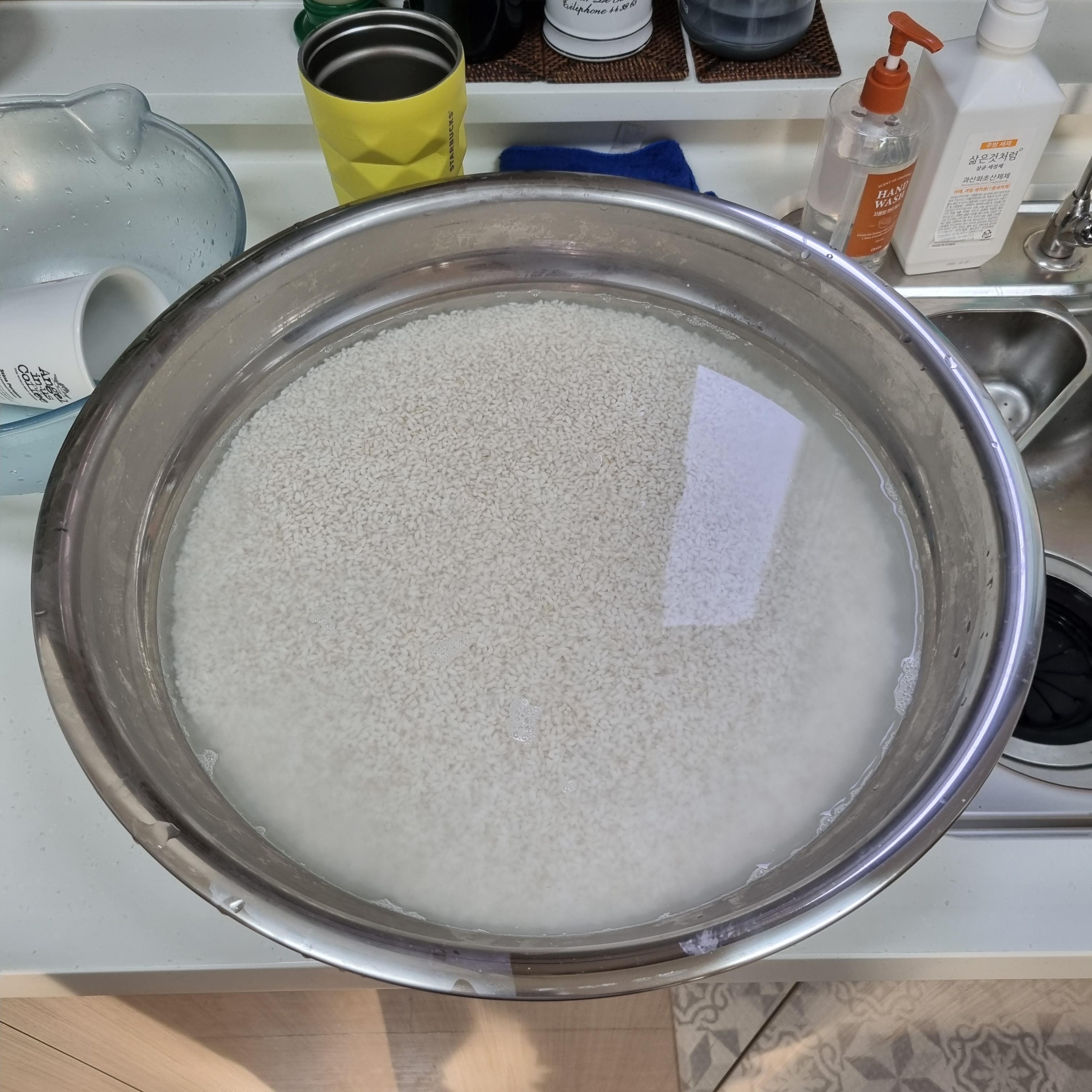1. 찹쌀 4kg 세미, 침미, 탈수의 과정을 걸쳐 물기를 쫙 빼놓는다.