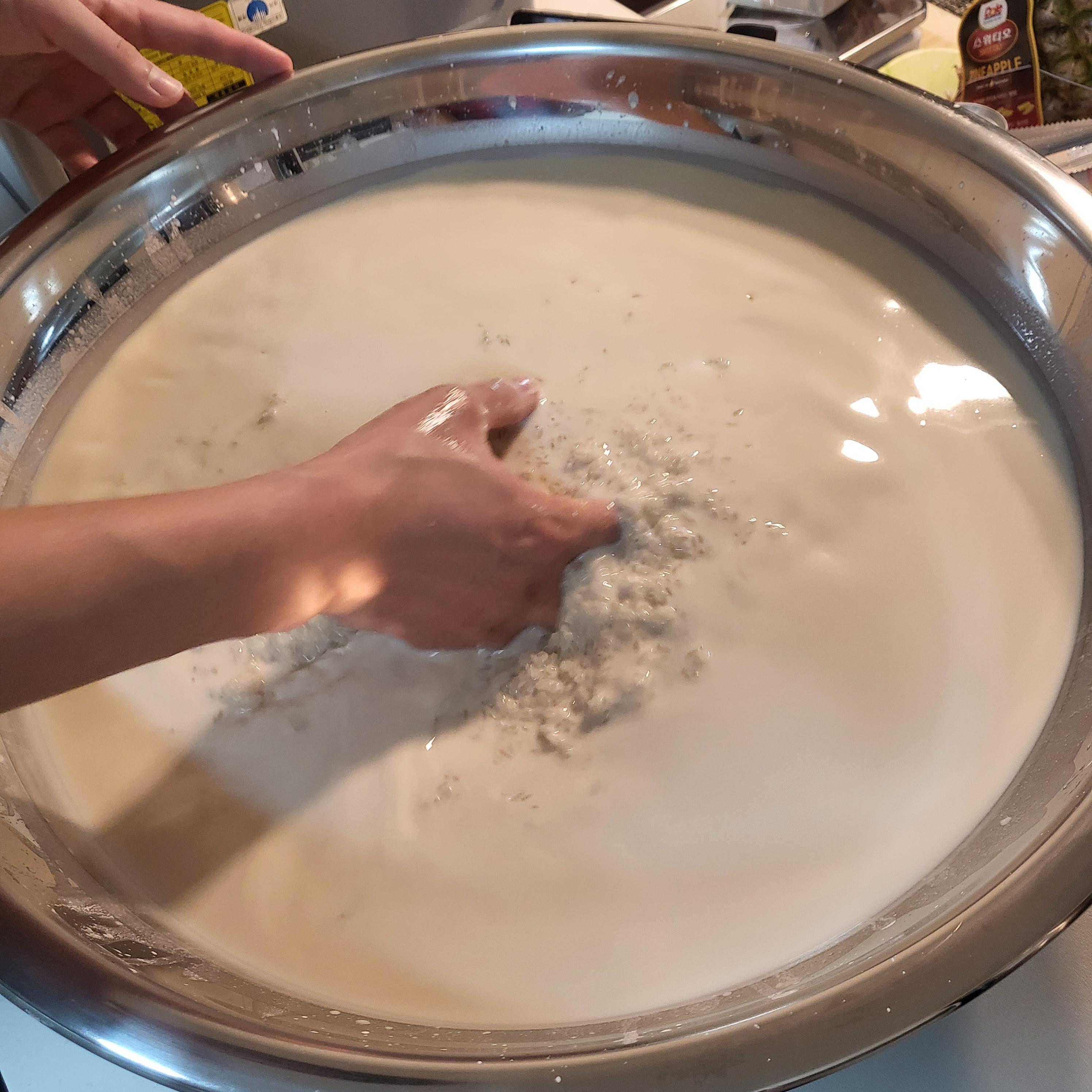 덧술의 밀기울 거르는 과정에서, 손아귀 아프다고 대충 짜면 안 된다. 최선을 다해서 꽉꽉 짜내야 한다. 그리고 고두밥과 거른 술을 혼합할 때, 밥알이 으깨지지 않도록 슬슬 휙휙 하면 된다.